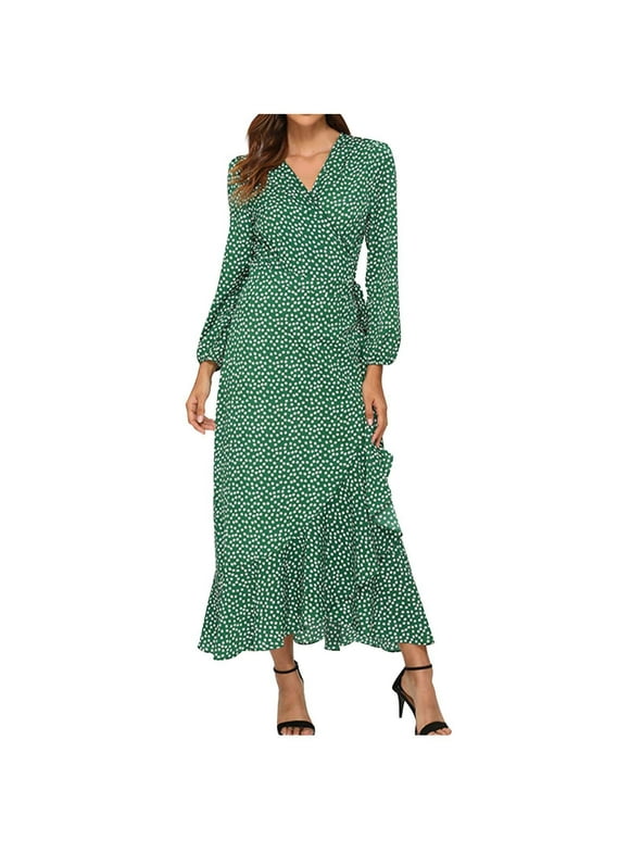 Temofon Women S Dresses Summer Wrap Bohemian Floral Printed Ruffle Hem Short Sleeve V Neck Beach Mini Dress Green Orange S At Amazon Women S Clothing Store